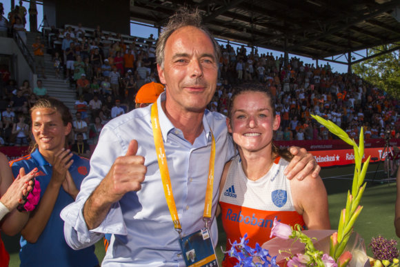 ‘Dat heeft niets met de interchange te maken. De Engelse dames deden in Rio ook volle interchange en toen zij olympisch kampioen werden, kregen ze alle aandacht en werd het ene na het andere gala georganiseerd. Ook bij de handbaldames wordt er continu gewisseld. Je moet gewoon prijzen winnen. Maar ik zie het ook aan mijn eigen dochter, die volgt Lieke Martens en dat soort voetbalsters. Zulke helden heeft het hockey zeker nodig. Maar vergeet niet: de NOS zendt ook alles uit van het voetbal. Dat moeten ze van de FIFA. Die macht heeft de wereldvoetbalbond. Als je de veel op tv komt, doe je mee. Hockey moet ervoor zorgen dat de media niet om ons heen kunnen. Dat wij de bekende namen hebben. Wij moeten onze eigen mediahypes creëren. Misschien moet je wel transfers in de winter toestaan? Stel, hypothetisch: ze willen nu bij Amsterdam ingrijpen na een matige eerste seizoenshelft, en ze willen Seve van Ass en Mink van der Weerden kopen. Dan ontstaat er wat. Dan krijg je reuring. Aandacht. Dat is alleen maar goed.’