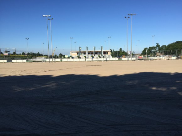 Dat niet alles helemaal perfect kan gaan, beseft Hoeneveld ook. ‘We hebben 5 dagen vertraging opgelopen bij het leggen van de velden. Dat komt door het natte weer. Deze week gaat de mat over de onderlaag en dan moét het ook droog zijn.’ Ondanks de eerdere vertraging door het weer, verwacht Hoeneveld geen problemen: ‘In Almere schijnt altijd de zon’, aldus de montere Almeerder.