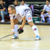 ‘De timing wanneer je uitkomt is lastiger in de zaal dan op het veld. Ik wissel het zelf soms af om de aanvallers te verrassen. Je moet vooral goed kijken naar de tegenstander. Hebben ze in balbezit overzicht of zijn ze vooral met eigen bal en stick bezig? Dat is het moment dat ze jou niet zien aankomen met een blocksliding.’