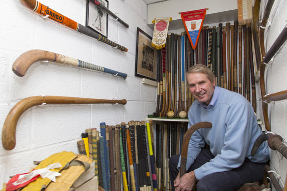 ‘Kijk’, zegt de waarschijnlijk grootste hockeyverzamelaar van Europa trots. In zijn kleine kelder, waar de muren haast met sticks zijn behangen, strekt hij zijn rechterarm uit. In zijn hand ligt een oranje bal. De sinaasappel, één van de modellen waarmee in Nederland voor het eerst werd gehockeyd. ‘Hij wordt ook wel de Panderbal genoemd, of Scheurleer…’ Hij is amper uitgesproken of zijn ogen schieten alweer razendsnel door zijn eigen kelder heen en weer. ‘Kijk, de Sinterklaasstick.’