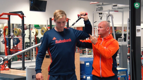 International Floris Wortelboer viel eind vorig jaar tegen Tilburg lelijk op zijn schouder, waarvan hij maanden moest revalideren. Hij riep de hulp in van oud-judoka en sportfysiotherapeut Leon Meijer. Of hij hem kon leren valbreken? Goed bezig, Floris. Wij kijken alvast uit naar je eerste koprol in de Hoofdklasse.