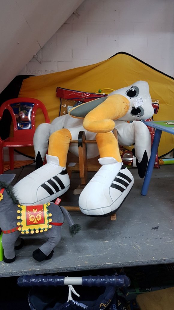 Toen wij afgelopen weekend een bezoekje brachten aan de kringloopwinkel in Apeldoorn, troffen wij tot onze schrik onze grote vriend Stockey weerloos aan. Zonder kleren, ook dat nog. Dit is dan ook een oproep aan iedereen die Stockey een warm hart toedraagt. Wie een nieuwe thuis voor hem heeft, mag hem voor 5 euro meenemen.