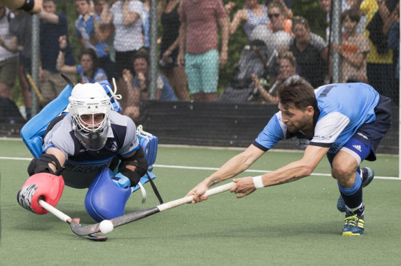 Goedegebuure zat voor het begin van het moment suprême met een handdoekje over zijn hoofd op zijn telefoon notities te lezen over hoe ze bij Hurley de shoot-outs nemen (zie de foto hierboven). De falende shootoutnemers hadden veel minder de moeite genomen zich in Goedegebuure te verdiepen, die opvallend vaak dezelfde techniek hanteerde, waar drie van de vier spelers van Hurley geen antwoord op hadden. Hij dook met zijn stick naar de bal.