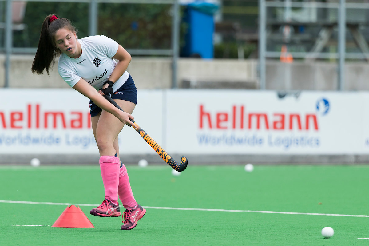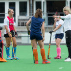 Op het veld is Van Maasakker – oud-aanvoerster van HGC – in haar element. Ze zit er bovenop. Na bijna elke actie van het groepje van vier speelsters volgt feedback. Ze is er niet vies van om het zelf voor te doen, waarna een specifieke aanwijzing volgt. ‘Kijk, zo neem je de verdediger mee. Daarna moet je wel zorgen dat je voetenwerk óók meedoet!’