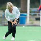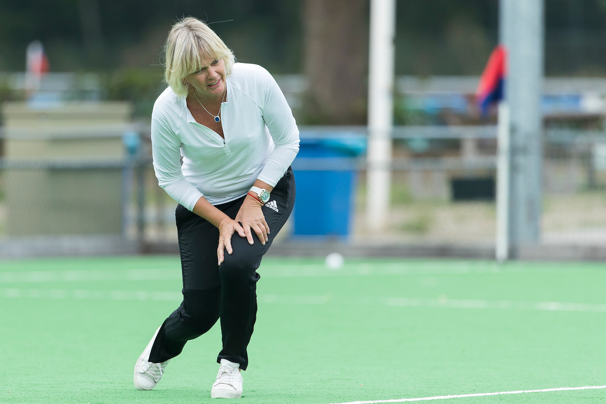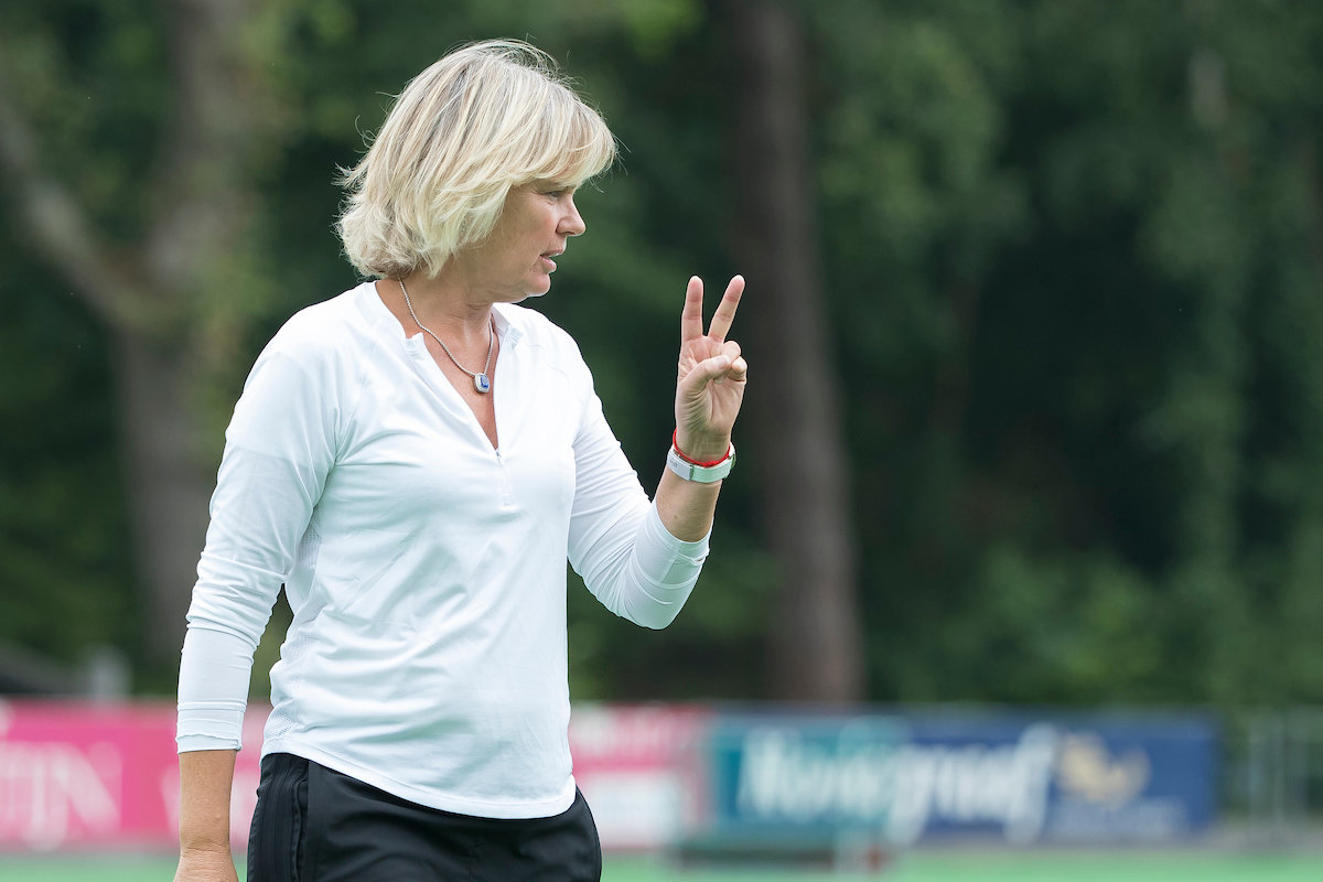 De nieuwe hoofdcoach Nettie van Maasakker in actie op het veld van SCHC. Foto: Willem Vernes