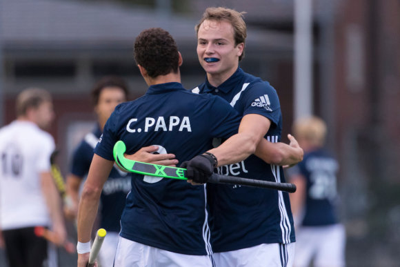 ‘Dit is het derde jaar van Camil bij de senioren. Je ziet dat de potentie er uit begint te komen. Dat zie je bij veel talenten. Het duurt meestal een paar jaar voordat ze echt boven komen drijven in de Hoofdklasse, uitzonderingen daargelaten,’ zegt Mahieu, die blij is dat een talent als de behendige Marlon Landbrug (Jong Oranje) tegenwoordig wordt bijgestaan door een internationale topspeler als de Argentijnse international Agustin Mazzilli. Waar Landbrug Jan Willem Buissant van Amsterdam met een ingewikelde truc dolt door de lucht, waar de toeschouwers in Heemstede hun handen voor op elkaar krijgen, laat ook Mazzilli zich snel zien. In een van z’n eerste acties neemt hij de bal aan, legt hij ‘m op z’n stick en begint aan een karakteristieke lange run. Zo is Mazzilli nu al een goede bliksemafleider voor Landbrug. Zoals de Belgische verdediger Alexander Hendrikx een jonge speler als Morris de Vilder kan ondersteunen. Volgens Mahieu gaan ook de Nieuw-Zeelanders Marcus Child en Jake Smith als een trein op de training, omdat ze toewerken naar het WK aan het einde van dit jaar.