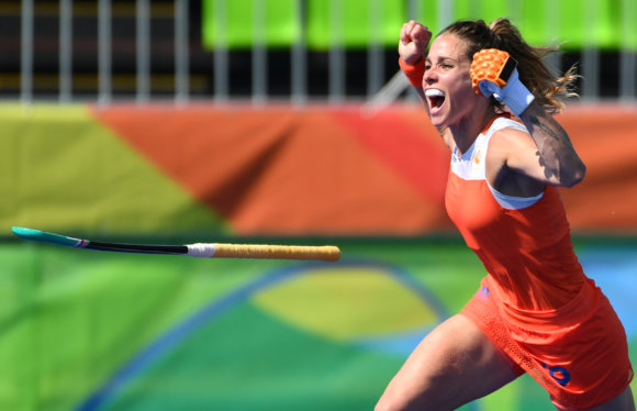 De scheidsrechter blies op haar fluit. Ellen Hoog stond klaar om haar shoot-out te nemen en het geroezemoes van de toeschouwers daalde in alsof er een minuut stilte begon. Ze begrepen het, de toeschouwers. De kunst van de stilte. Wat kan een zinderende stilte een prachtig middel zijn om de spanning van het moment aan te geven. Zelden groeide het hockeystadion uit tot een sfeervol stadion – doorgaans was het er leeg en kil – maar nu stond het kippenvel op onze armen. Het publiek voelde haarfijn aan dat dit een alles-of-niets-moment was. Een moment waarop Ellen Hoog balanceerde tussen eeuwige roem en tranen van verdriet. Naarmate ze dichter- en dichterbij de Duitse keepster kwam, nam het geroezemoes heel zachtjes toe, als opmaat naar de ultieme vreugde-uitbarsting. Ze schoot. Je hoorde de bal tegen de plank ploffen en het publiek barstte in juichen uit. Hoog begon in de rondte te rennen, gooide haar stick weg en hief haar armen in de lucht. Even had ze alle duizenden ogen in het stadion nog op haar gericht, vlak voordat ze bedolven zou worden onder haar dolblije teamgenoten. Een fotograaf van Getty legde dit prachtige moment vast in de onderstaande foto. Ik kan er uren naar kijken.