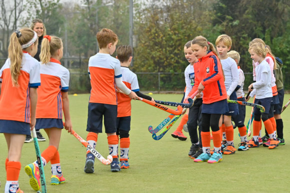Jacqueline Tijkotte is een van de bedenkers van de ‘internationale’ competitie voor de jongste jeugd. ‘We spelen op zondagochtenden met onze guppen (vijfjarigen, red.) al onderlinge wedstrijden. Dan bootsen we de Hoofdklasse na. De miniwedstrijdjes, zoals we ze noemen, gaan dus telkens tussen twee ploegen uit de Hoofdklasse. Zo heb ik bijvoorbeeld laatst Kampong tegen Bloemendaal begeleid’, legt Tijkotte uit.