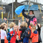 Jacqueline Tijkotte deelt chipzakjes uit als prijs. De ‘internationals’ kunnen niet wachten. Foto: Bart Scheulderman