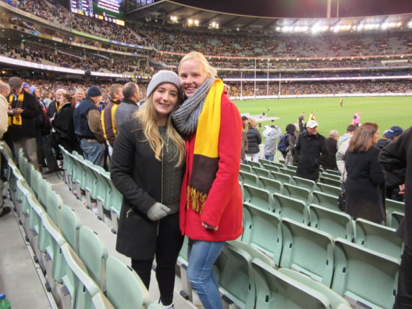 Ik ben inmiddels naar twee Footy-wedstrijden geweest hier in Melbourne en de sfeer is geweldig. De Melbourne Cricket Ground biedt plaats aan zo’n 100.000 toeschouwers en het stadion zit bijna altijd bomvol. Fans van de spelende clubs zitten kriskras verspreid. Hooligans? Die kennen ze hier niet. De slagersjasjes van de scheidsrechters en de strakke broekjes en mouwloze shirts van de spelers maken allemaal diepe indruk wanneer je het voor het eerst ziet.