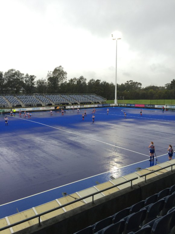 Diezelfde dag had ik training in het State Hockey/Netball Centre. Het veld wordt daar eens in de twee weken door KEW gehuurd, zodat we ook trainen op een waterveld. Waar ik moest wennen aan het trage zandveld, moeten zij wennen aan het snelle waterveld.