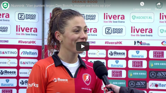 ‘We mogen er trots op zijn dat we dit seizoen vier punten tegen Den Bosch hebben gepakt.’ Laura Nunnink, international van Oranje-Rood, was na afloop duidelijk in haar commentaar over de prestatie van haar ploeg in de topper met de regerend landskampioen die in 1-1 eindigde.