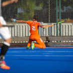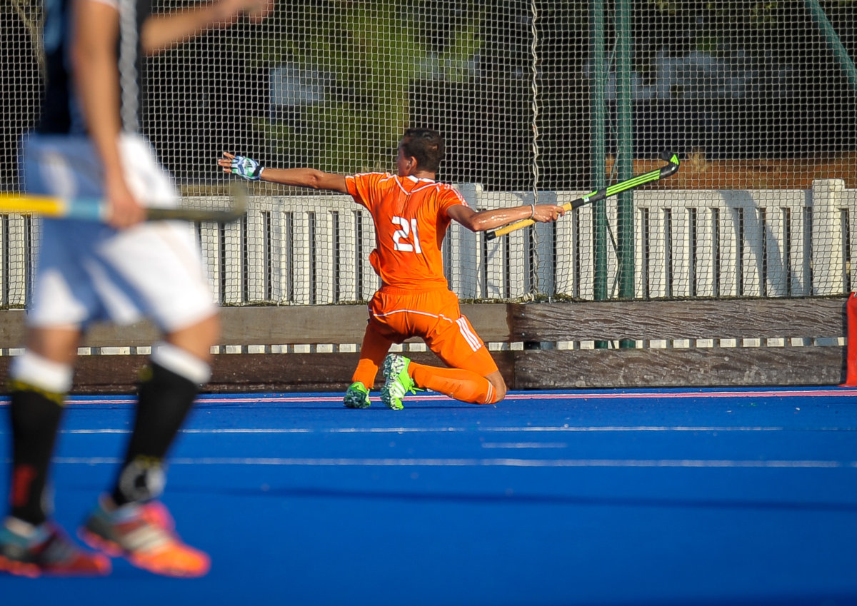 Ondanks de druk en een serie strafcorners aan Duitse zijde, wist Oranje zich nu en dan goed onder de druk uit te hockeyen. De 2-2 viel uit een perfect uitgevoerde counter, met een beheerste tip-in van Camil Papa (foto) als sluitstuk.