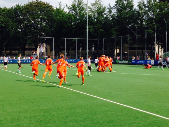 Nederland en Duitsland ontliepen elkaar bar weinig. De Oranje-jongens leidden in de rust comfortabel, dankzij een rebound van Jibbe Staps en een benutte strafbal van Olivier van Tongeren. In de tweede helft waren de rollen omgedraaid en scoorde Duitsland twee keer vlak na elkaar. Keeper Bob Hoopman redde daarna uitstekend op een strafcorner van de Duitsers.