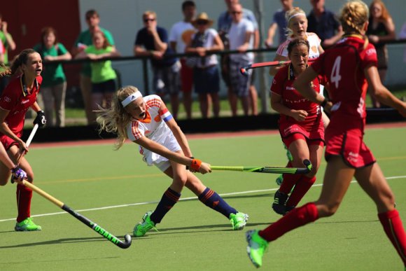 Nederlands Meisjes B blijft het goed doen op de 6 Nations U16 in Bremen. De derde wedstrijd werd met 8-0 van België gewonnen. Pien Dicke (de eerste), Yibbi Jansen (3x), Bente Baekers, Carmel Bosch (2x) en Teuntje Horn zorgden voor de Oranje-doelpunten