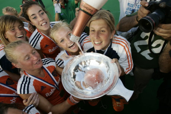 ‘In Rosario in Argentinië in 2006 wonnen we de Champions Trophy in een heksenketel met bomvolle tribunes. Dat was een hele mooie herinnering. We voelden dat er een nieuw team aan het ontstaan was met andere meiden. Naomi was daar heel belangrijk in, zij bracht een bepaalde sfeer. Zij kon zoveel ontspanning uitstralen, terwijl wij het allemaal heel zwaar in Athene hadden gehad. Met die nieuwe groep meiden erbij kreeg ik ook gewoon weer zin om lekker te hockeyen, terwijl ik dat even kwijt was. Ik heb echt geleerd van dat proces dat je meiden moet hebben die die elkaar aanvullen.’