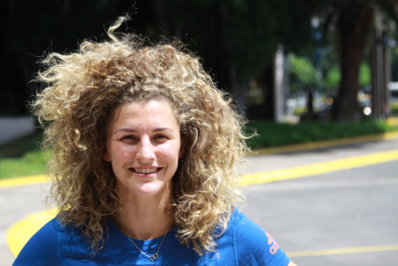 ‘Opeens zeiden mensen toen: wat heb je toch mooi haar. Ik ben er nu blij mee, ik kan er ook niets anders mee, er zit zoveel krul in. Het is haar wassen en dan laat ik het drie dagen zo. Met dit weer en dat chloorwater in Buenos Aires is het superpluizig. Het is veel werk. Het is alleen raar dat mensen soms zonder te vragen aan mijn haar zitten. Gewoon random mensen! Gelukkig vragen de meeste mensen het als ze aan mijn haar willen voelen.’