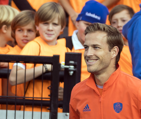 Zijn vrouw Manu zag haar man de afgelopen twee jaar vooral in de denkstand. Sinds hij in april weer is opgeroepen, is hij bevrijd uit zijn Rotterdamse kooi, waar hij alleen kon acteren op het nationale toneel. Het wereldtoneel is weer zijn podium. ‘Je ziet het aan zijn hele houding, sinds hij dat oranje shirt weer aan mag doen. Hij is los, hij is intens gelukkig. De lach gaat niet meer van zijn gezicht. Dit is wie hij is. Het hoogst haalbare. Hier is hij op z’n plek.’