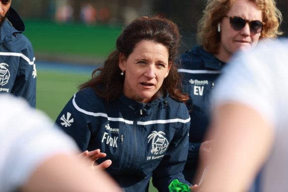 Fleur van de Kieft aan het werk als coach van Kampong. Foto: Bart Scheulderman