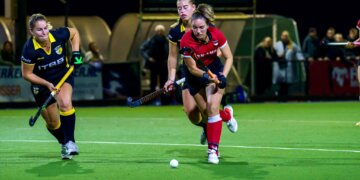 Rood shirt/blouse, zwarte broek/rok, rode kousen