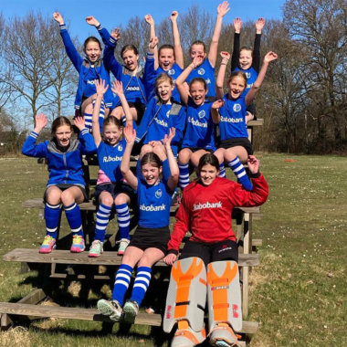 zwart shirt, kobaltblauwe rok/broek en zwarte sokken met kobaltblauwe band