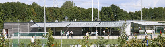 Ruime gratis parkeergelegenheid bij het sportpark.