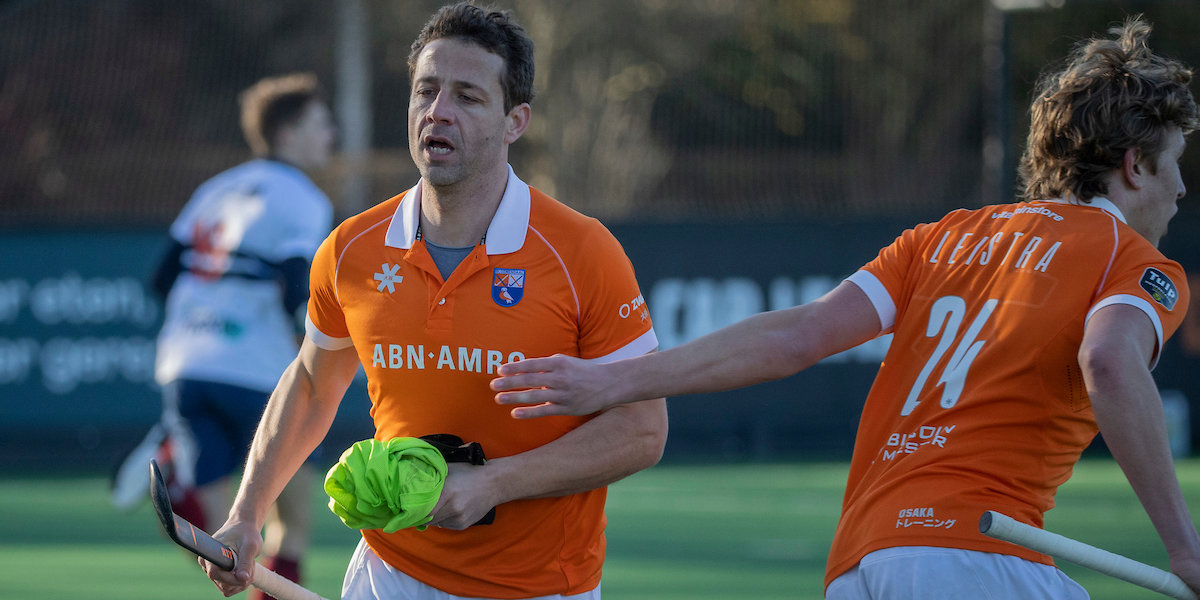 Zo ploeterde Bloemendaal, dat zondag onder meer Glenn Schuurman en Thierry Brinkman in quarantaine had zitten, door de aanloop naar de tweede seizoenshelft, die voor de oranjehemden begint met een thuisduel tegen Pinoké. ‘Je kunt het toch ook niet maken om af te zeggen?’, stelt Mathijssen zichzelf een retorische vraag. ‘De acht jongens die er wel zijn, moeten ook oefenwedstrijden spelen, om in het ritme te komen. Vorige week was het even spannend. Ik heb minstens dertig man gebeld om in te vallen. Iedereen in deze omgeving was skiën, een weekendje weg of iets anders aan te doen. Jongens A, jongens B, heren 2 en 3, we hebben zelfs bij de veteranen gekeken. En toen wist ik het.’