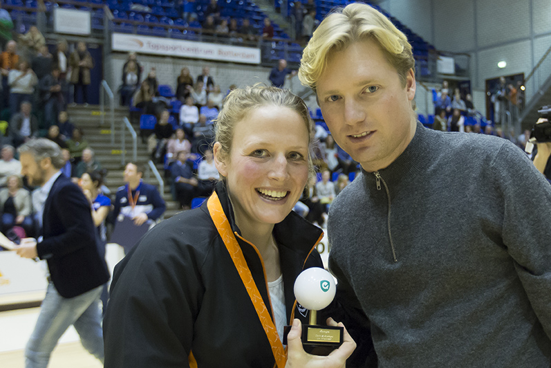 Cedric de Gier (hdm) en Anouk van den Berg (Groningen) zijn gekozen tot hockey.nl beste zaalhockeyer en beste zaalhockeyster van Nederland. Ze ontvingen in Topsportcentrum Rotterdam uit handen van oud-international Klaas Vermeulen de speciale hockey.nl-troffee.