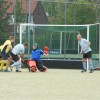 De chaos is compleet als Victoria de 2-2 maakt. Armand Triepels wordt belaagd door speelsters van Oranje-Rood. Foto: Willem Vernes