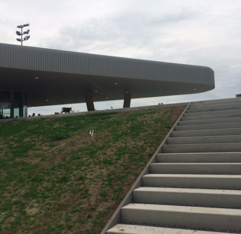 ‘De blikvanger van het clubhuis is de luifel’, vindt Van Duivenboden. ‘Die is heel indrukwekkend, daar wordt je blik meteen naartoe getrokken. Als het regent of de zon te fel schijnt is het onder die luifel prima vertoeven.’
