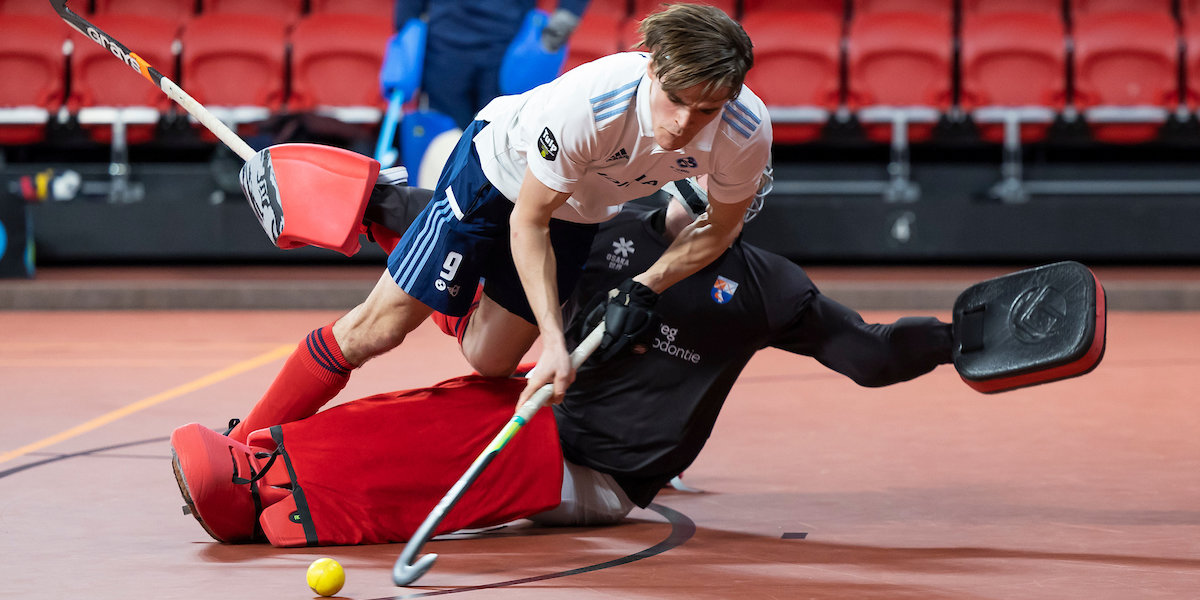 Keep Bloemendaal-keeper Fritz Schnoeckel pakte de toegekende strafbal en stopte ook de daaropvolgende shoot-out. Foto: Willem Vernes