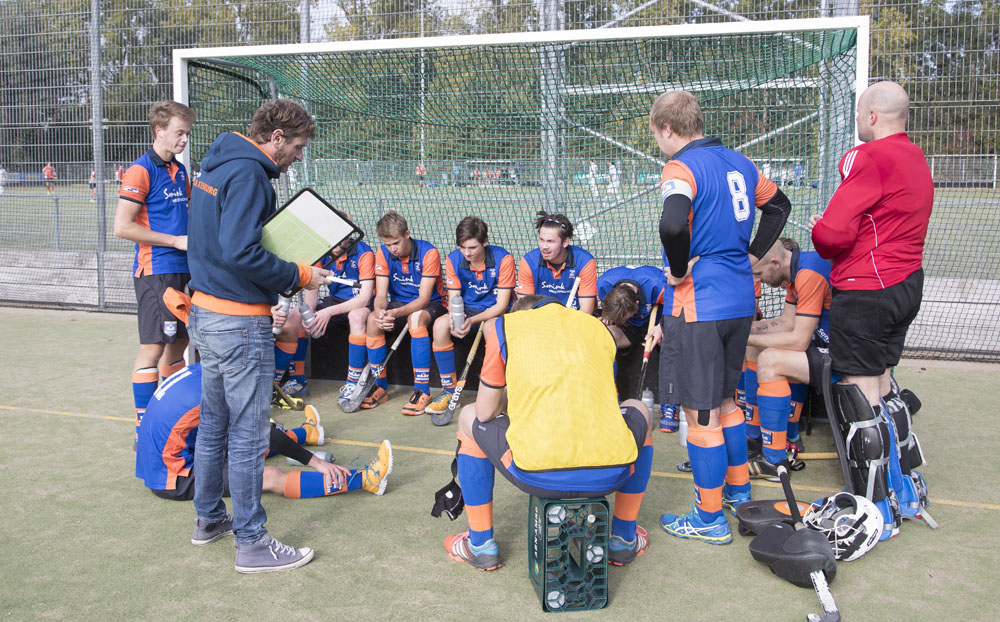 LISSE – Ronde 1 Bekerhockey om de Silvercup, Hoorn-coach Henk-Jan Viskaal luister naar zijn speler (c) Koen Suyk