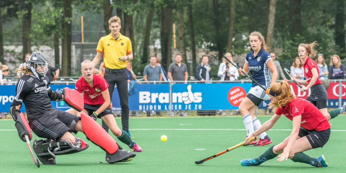 ‘De cirkel is mijn koninkrijk en de eerste paar meter voor mijn goal hoeft echt niemand te komen, dat is mijn troon.’ Met die woorden benadrukt keepster Sterre Korterik dat AMVJ zondag in de finale van de Silver Cup van goeden huize moet komen om de pas 18-jarige goalie van EHV te verslaan. Laat AMVJ in de vorm van Josephine Timmermans nou net een shoot-outkoningin in huis hebben.