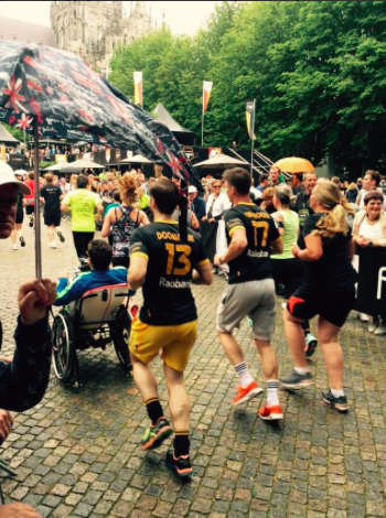 Zowel de hockeyers uit Heren 1 als de LG-ers liepen de afgelopen jaren al eerder mee met de Vestingloop, alleen nooit samen. ‘Onze fysiotherapeut, Mathias Mariam, had ook een aantal spelers van het LG-team onder behandeling. Hij heeft het initiatief genomen om hen aan Heren 1 te koppelen en iedereen te enthousiasmeren voor de loop.’ De LG-ers kregen de afgelopen tijd speciaal looptraining ter voorbereiding op de Vestingloop, vertelt Hoogwout.