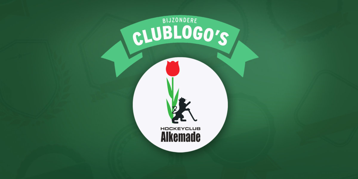 Het logo laat er geen misverstand over bestaan om welke club het gaat. Met zwarte letters staat er op het embleem hockeyclub Alkemade. Daarnaast valt de rode tulp op en een staande leeuw met een hockeystick in de hand.