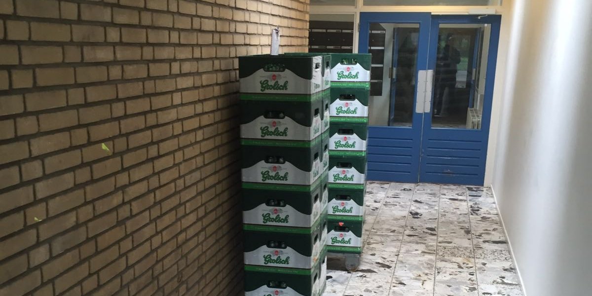Al pratend ontstond het idee om ter compensatie bier bij de studenten te bezorgen. Waar het in 1e instantie enigszins als grap werd afgedaan, besloot de club al snel om het plan uit te voeren. ‘Op een gegeven moment dacht ik bij mezelf dat we het gewoon moesten doen. In de bestuursvergadering gooide ik het op tafel en iedereen was enthousiast. De studentenflat bestaat uit 16 verdiepingen met elk 3 aparte woongedeeltes waardoor we 48 kratten nodig hadden. Uiteindelijk heeft het bestuurslid accommodatie samen met zijn zoon en een steekwagen de kratjes bij de studenten bezorgd. Ik denk dat ze wel een keer of 32 op en neer zijn gegaan.’