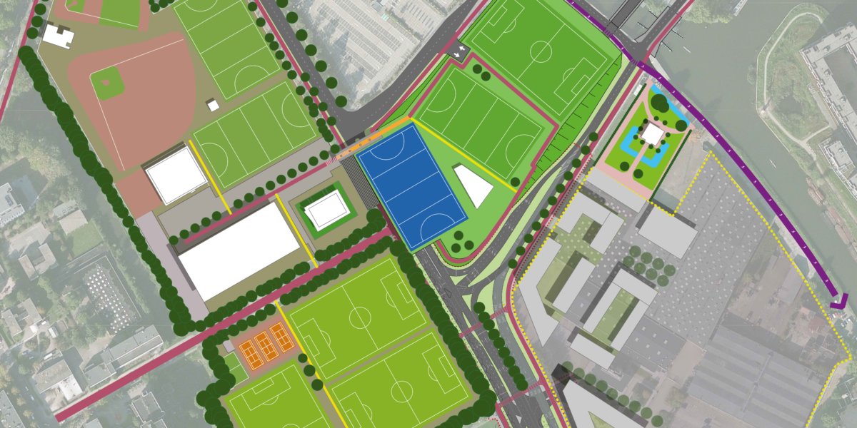‘Park & Play’, heet het plan, waarin er 2 hockeyvelden en 1 voetbalveld op de nieuw te bouwen parkeergarage van de Jaarbeurs zouden verrijzen, in een parkachtige omgeving. ‘Het plan kan voor alle partijen interessant zijn’, stelt Van Aart. ‘De Jaarbeurs wil de achterkant van het terrein verder ontwikkelen, en als daar gesport wordt heb je er, ook ’s avonds, licht en leven in de brouwerij. De gemeente kan met dit project laten zien dat Utrecht een vernieuwende stad is, en het past binnen de visie om dezelfde grond voor meerdere doelen te gebruiken.’