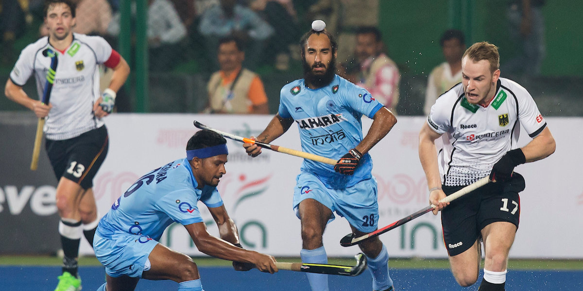 We zien beelden van een ontmoeting tussen India en Duitsland in de finaleronde van de Hockey World League uit 2017. En laten we zeggen dat de Duitse aanvaller Christopher Rühr ietwat enthousiast het duel ingaat met tegenstander Manpreet Singh. Wat zou jij beslissen in deze situatie? Geef je alleen een vrije bal? Of komt er ook een kaart aan te pas? Zo, ja welke kleur?