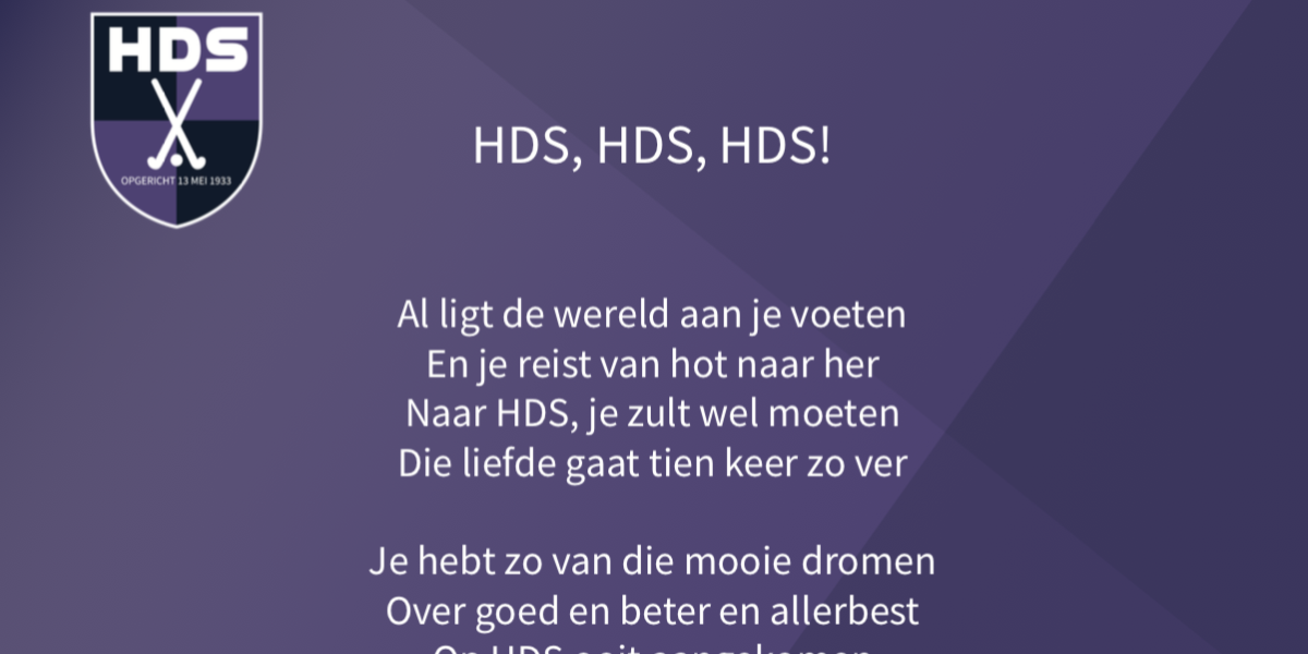 ‘Ik was in de veronderstelling dat het nieuwe clublied wat meer leefde. Ik hoorde het de jongens van Heren 3 immers zingen en de tekst van het lied hangt op een grote poster in het clubhuis. Maar niks bleek minder waar toen ik op een zondag langs de kant stond. Ik zette eigenhandig en luidkeels ‘drie HDS-en voor HDS’ in en hoopte dat het andere publiek achter me zou staan met: ‘HDS, HDS, HDS’. Niks bleek echter minder waar en ik boog nederig mijn hoofd. Ik moet niet te hard van stapel lopen. Zoiets moet heel langzaam gaan leven. Ik weet dat ze enthousiast zijn bij de leiding van het jeugdkamp van onze club. Daarom heb ik ook een karaokeversie van het lied. Als zij het de jonkies in kunnen stampen, zal het langzaam groeien.’