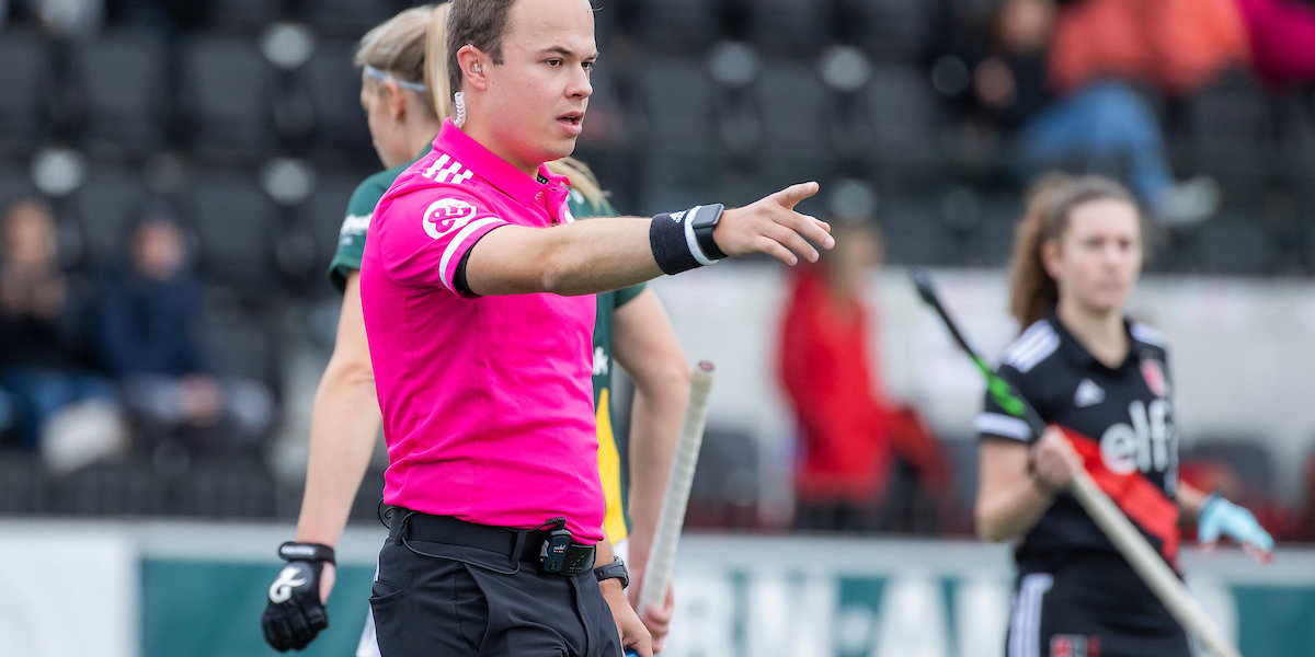 Maar waarom is het een goal? Om die vraag te beantwoorden schakelen we Armand Triepels in. Hij fluit wekelijks in de Hoofdklasse. ‘De aanvaller pusht de bal in deze situatie ongevaarlijk hoog naar zijn medespeler’, constateert Triepels. ‘Als speler mag je de bal altijd omhoog pushen zolang het niet gevaarlijk is of het kan leiden tot gevaarlijk spel.’