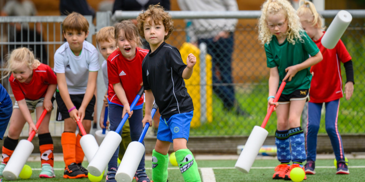 De jongste jeugd in actie op de velden van Kromme Rijn. Foto: KNHB/Bart Scheulderman