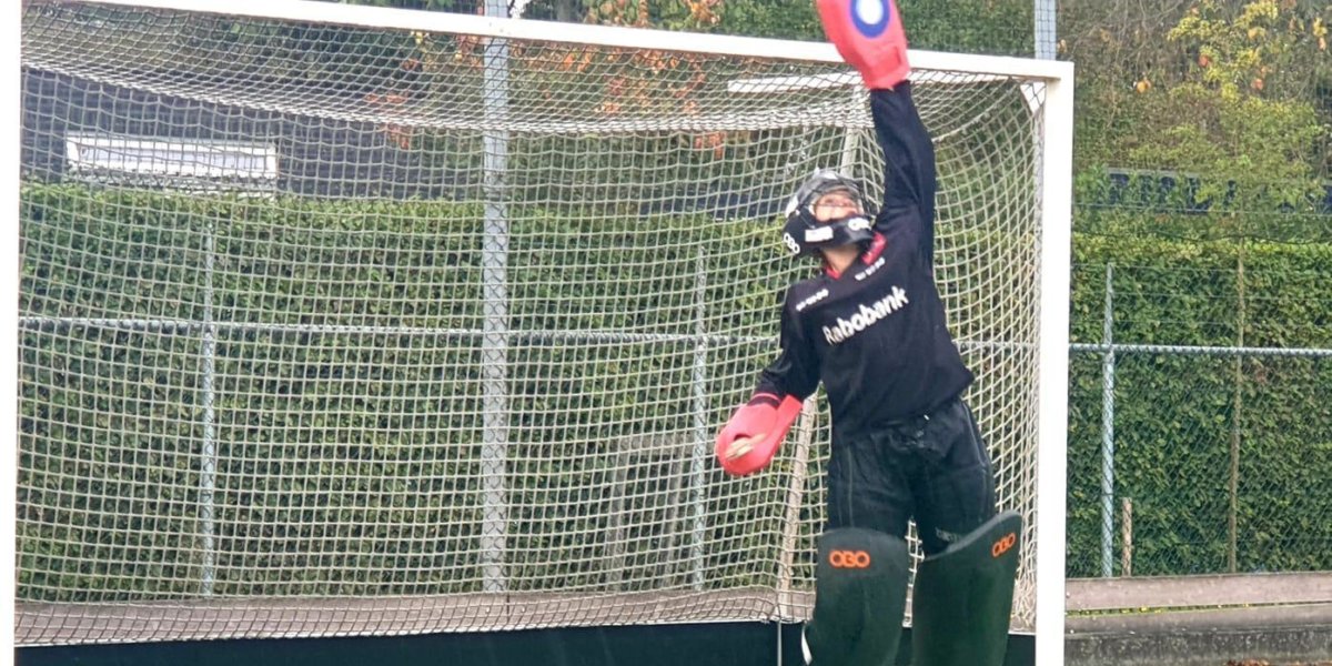 Eén ding is zeker jullie hebben mooie tenues maar een keeper moet m.i. niet in het zwart keeper omdat je dan juist niet opvalt in een fluoriserend shirt val je meer op en tegenstanders schrikken er vaak van . Dat je al onervaren al keeperstraining geeft is eigenlijk onzin maar beter iets dan niets zeker als je er plezier in hebt . Je moet voor de wedstrijd een goede warming up houden samen met de andere spelers voor al je liezen , 10 keer beide benen stretchen en 10 seconden vast houden , om en om . Het inslaan moet gaan van makkelijk naar moeilijk de rest is aan de coach . Draag je ook wielrenhandschoentjes ? Dan heb je betere grip met je stick . En eigenlijk zou je 2 sticks moeten hebben , één voor de wedstrijd en een iets zwaardere speciaal voor de strafcorner . Verder wens ik je veel succes want keepen is super leuk (als je goed bent) .