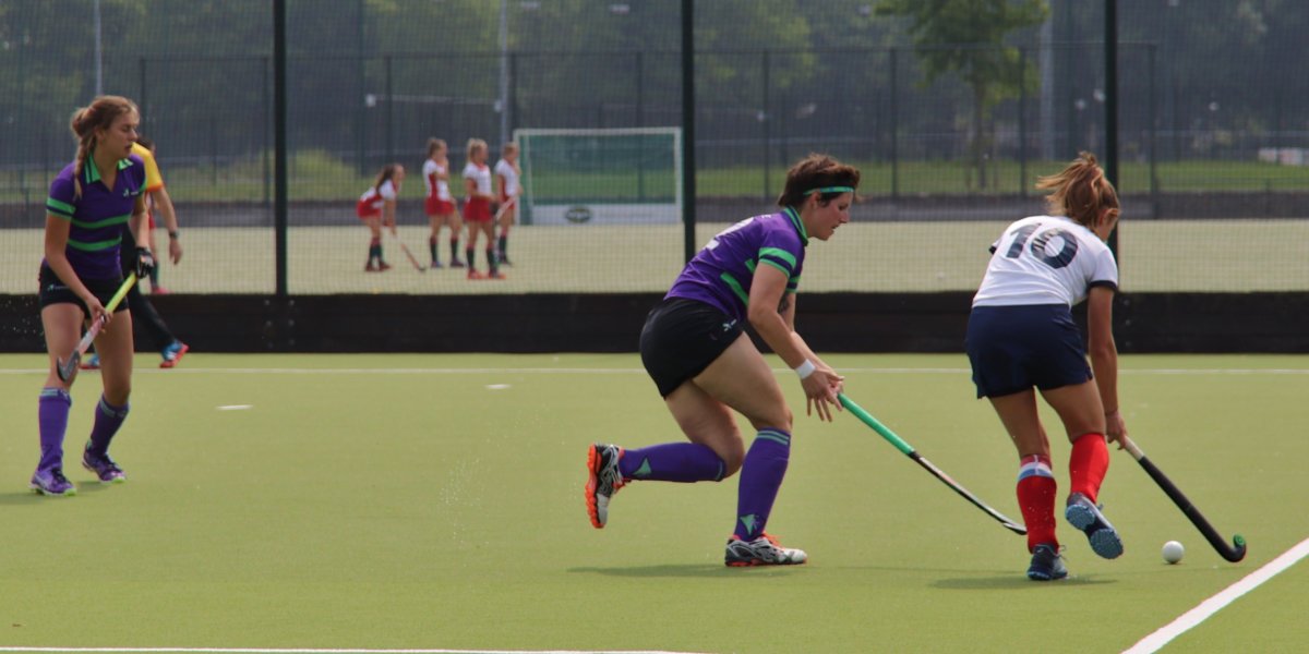 ‘Dames 1. Wij spelen dit seizoen in de Overgangsklasse, poule A, en trainen drie keer in de week.’