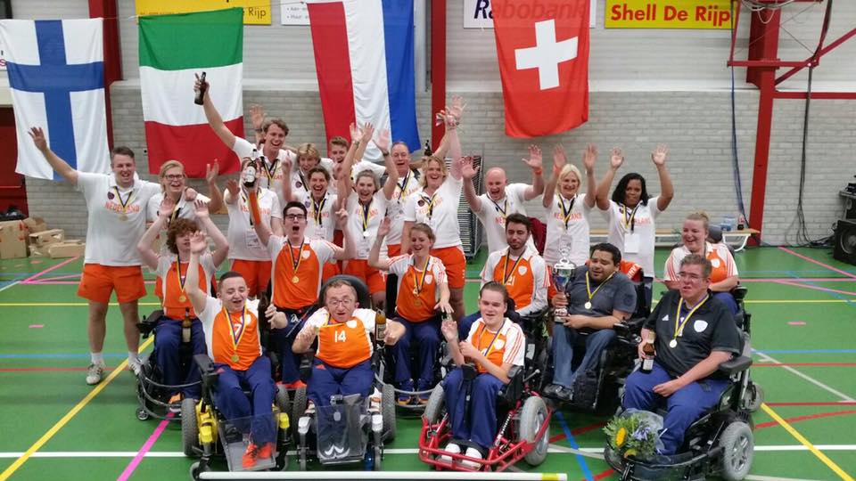 De Nederlandse powerchair-hockeyers zijn in De Rijp afgelopen zondag Europees kampioen geworden. In de finale waren de Oranje-spelers met 7-2 te sterk voor Italië. ‘De echte finale was eigenlijk de halve finale’, vond bondscoach Paul Mennink. Toen wonnen de Nederlandse rolstoelhockeyers in een bijzonder spannend duel nipt met 6-5 van België. Regerend wereldkampioen Nederland prolongeerde in De Rijp de Europese titel. ‘We zijn nu nóg meer de te kloppen ploeg.’