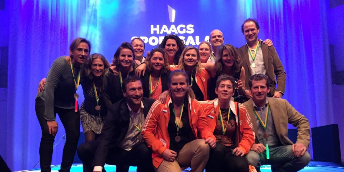 ‘We werden op het podium, samen met nog meer Haagse sportkampioenen van 2015, gehuldigd met een mooie medaille met een ooievaar erop’, vertelt speelster Majanka van den Barselaar. ‘We waren eigenlijk het voorprogramma van het Sportgala Den Haag.’ Bijna niemand van de 40+ masters woont zelf in Den Haag, maar de organisatie – Dutch Hockey Masters – is er echter wel gevestigd. ‘Zij hebben ons opgegeven voor de huldiging.’