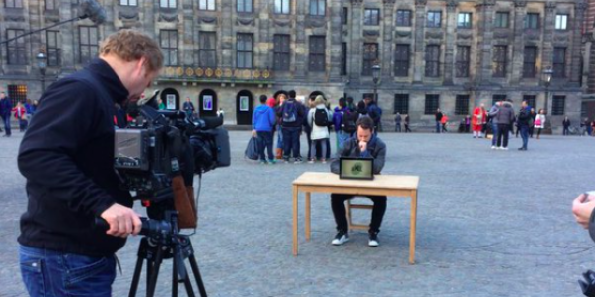 Op de Dam werd vanochtend een tafel geplaatst met een ‘Wie is de Mol?’-laptop. Eén voor één schoven daar in de loop van de ochtend de kandidaten aan, die in 2016 in het programma te zien zijn.