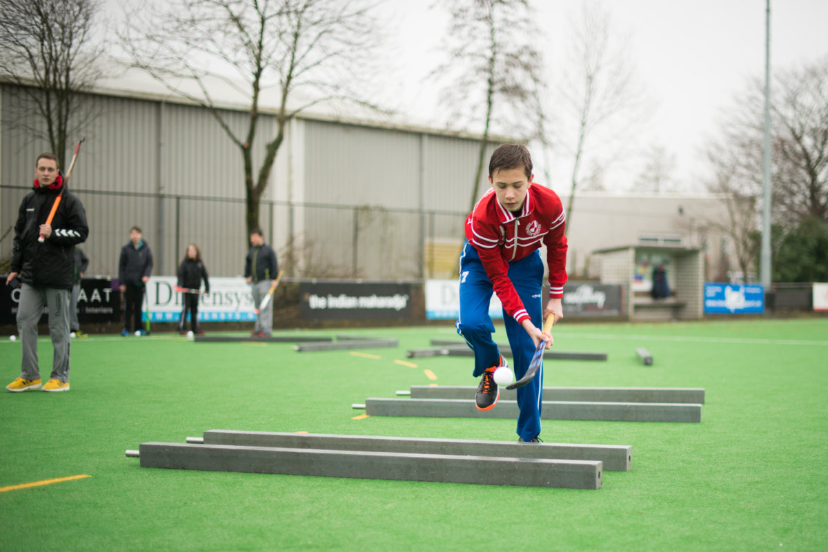 Met de uiteenlopende challenges train je, terwijl je een hoop lol beleeft, je oog-hand-coördinatie en leer je te anticiperen op plotselinge veranderingen. Steenbergen: ‘In het begin vroegen sommige jongens zich nog af wat dit met hockey te maken heeft, maar op een gegeven moment zagen ze in dat het goed is voor je techniek en dat je daar later op het veld ook echt wat aan hebt.’