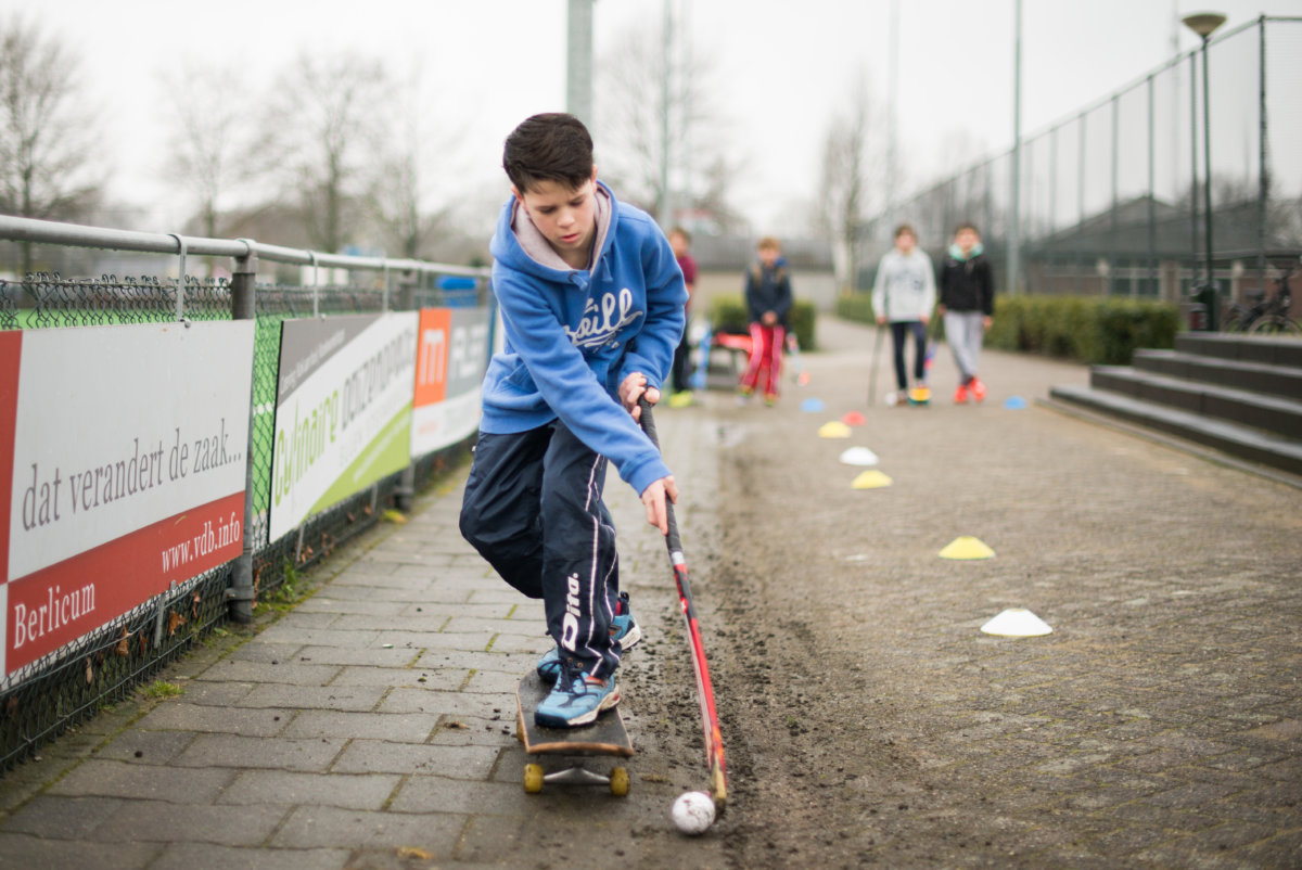 Staand op een skateboard een helling af, terwijl je met je stick de bal hooghoudt. Of zo snel mogelijk een bandenparcours afleggen en jezelf een weg zien te banen door een doolhof van balken. Het is weer eens wat anders dan een normale hockeytraining. Bij Urban Hockey test en show je je hockeyskills niet alleen op het veld, maar vooral op parkeerplaatsen, in speeltuinen of ‘gewoon’ op het terras van je hockeyclub.