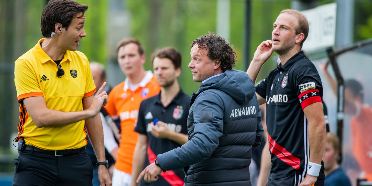 De coaches Jan Jorn van ’t Land van Amsterdam en Santi Freixa van Kampong kregen zondag beiden geel voor aanhoudend commentaar op de arbitrage. Ze kregen de straf opgelegd die daarbij hoort: achter het hek staan (en niet meer coachen) plus een speler van je ploeg aanwijzen die tien minuten op de strafbank moet zitten.