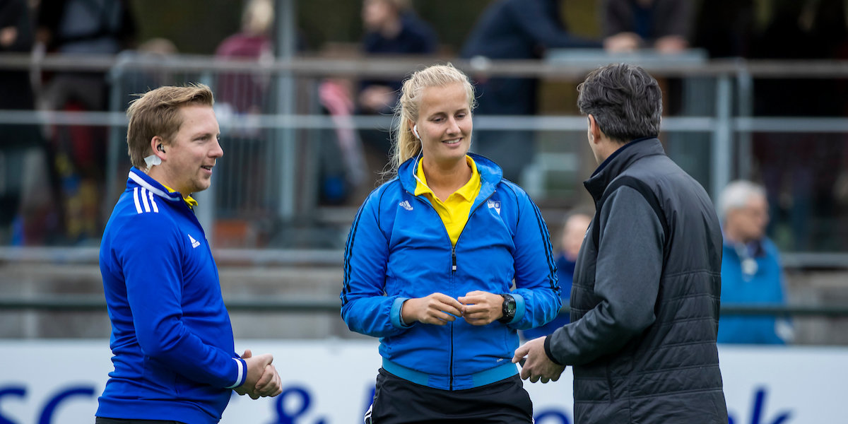 ‘Een onbesuisde snijer’, luidde een reactie. ‘Gevaarlijk spel, ook al komt de bal onder de knie’, aldus een ander. Hoofdklasse-scheidsrechter Lizelotte Wolter vertelt ons hoe het precies zit.